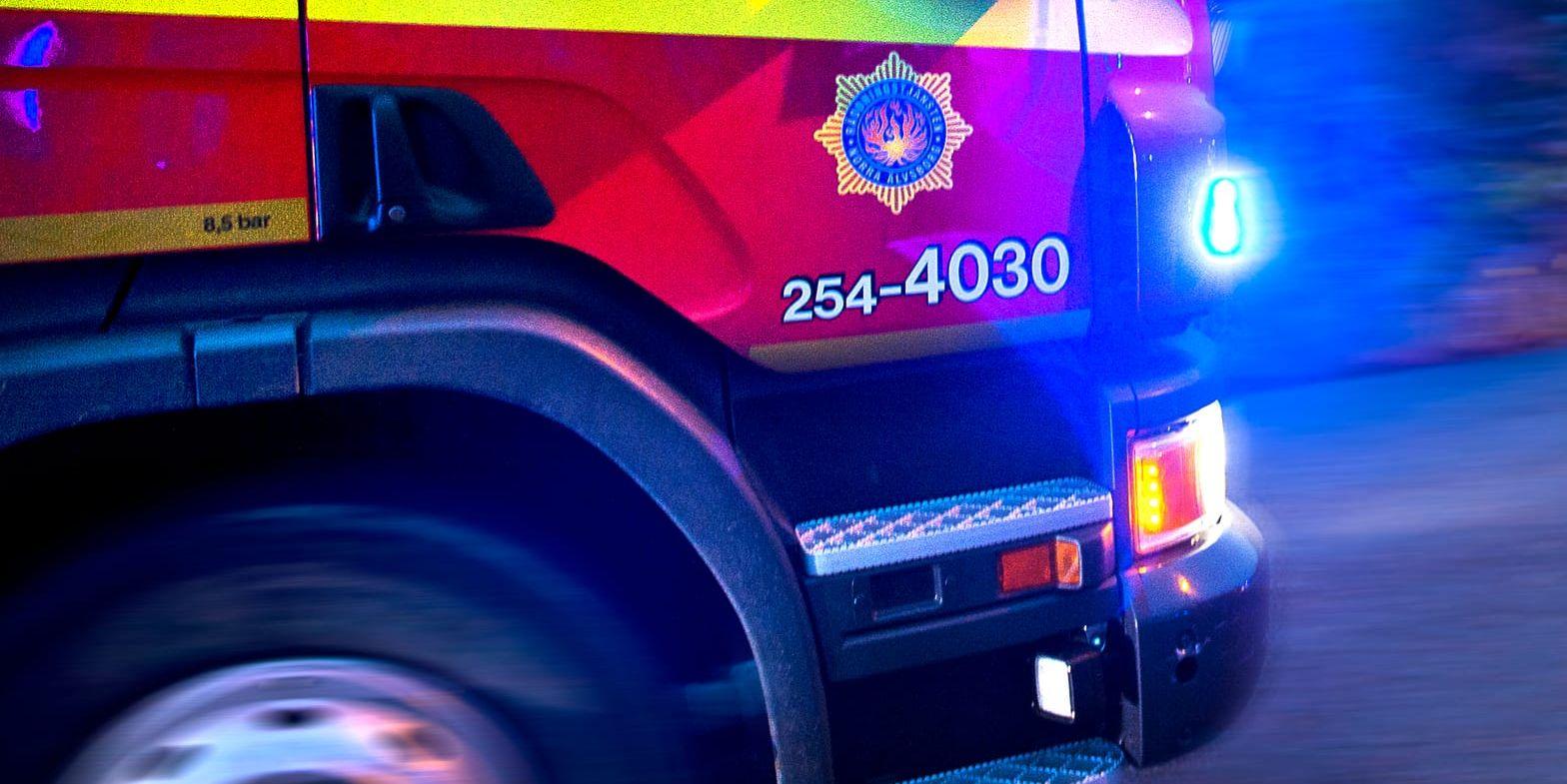 Flisförråd fattade eld Mellerud: ”Svårt att komma åt”Räddningstjänsten i Brålanda är på plats med två ambulanser.